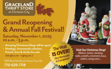Shop at Graceland Thrift Store and support the Children and Family programs at Christian City. We’re located at:
