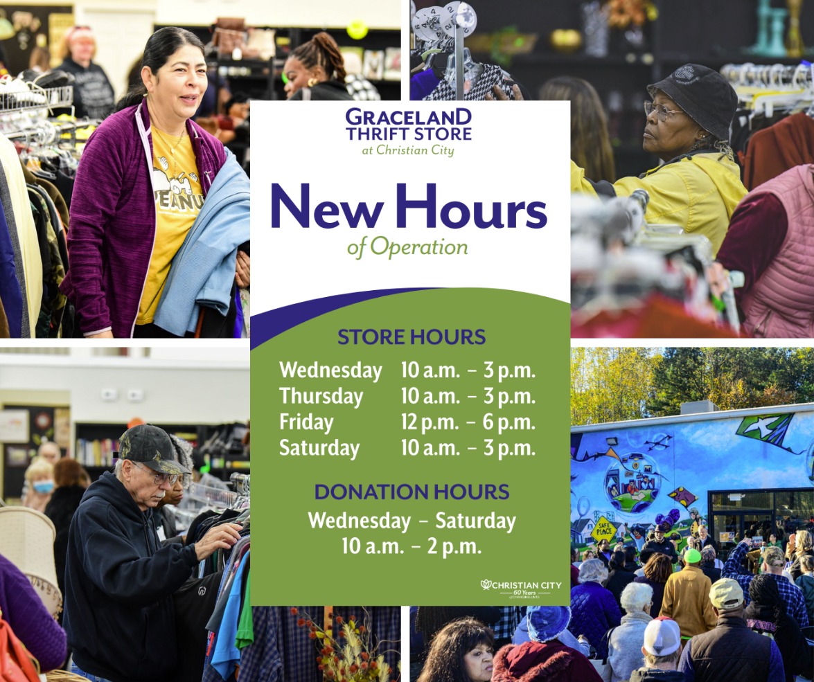 Shop at Graceland Thrift Store and support the Children and Family programs at Christian City. We’re located at:
